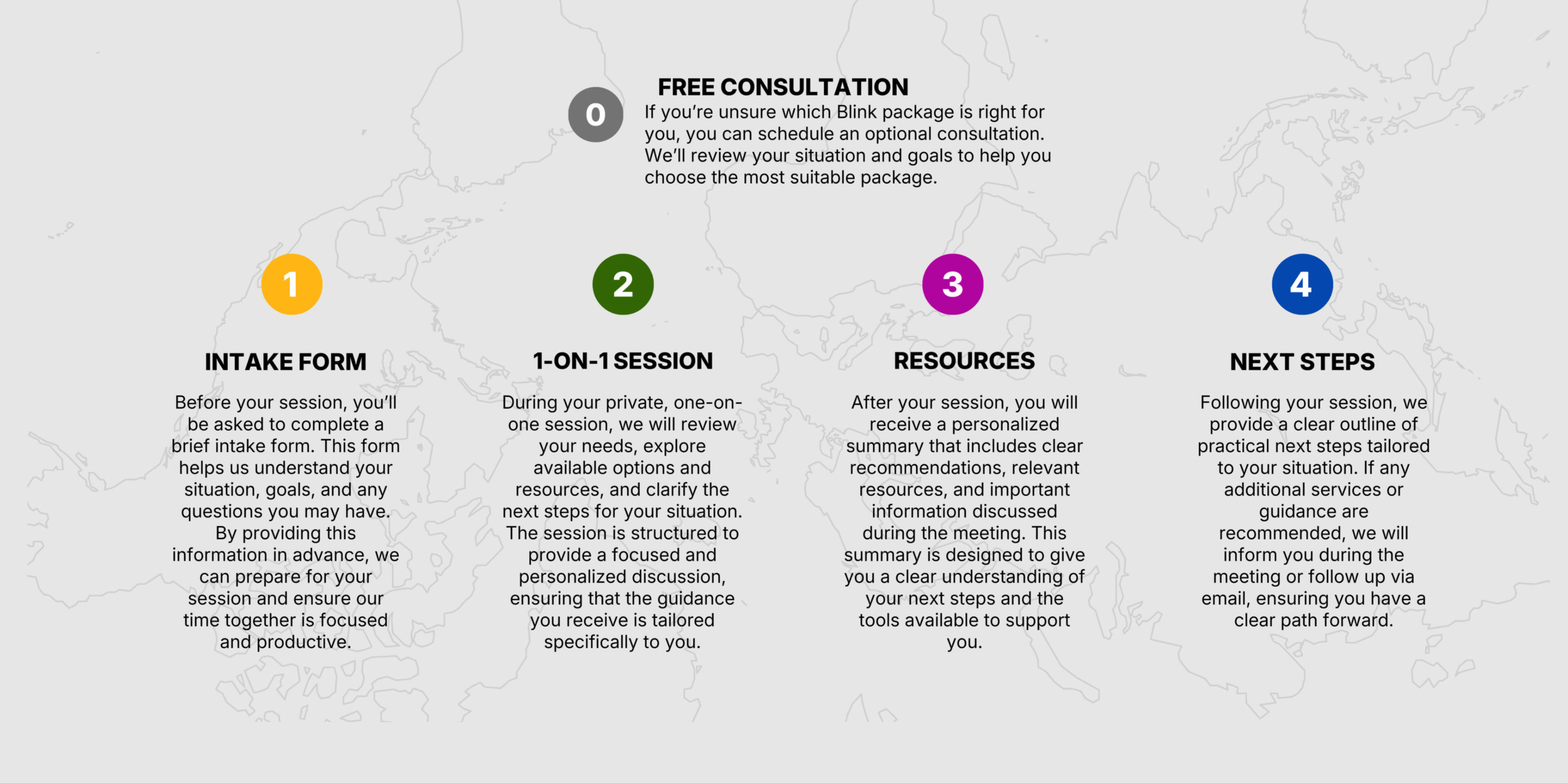 Blink is a personal consulting and system-navigation service designed to help people understand what steps to take, what resources they need, and how to access them. It supports individuals who feel unsure, overwhelmed, or stuck by breaking down complex processes into clear, manageable actions. Blink does not provide legal representation or regulated advice; instead, it offers structured guidance, practical explanations, and direction so people can navigate systems with confidence and make informed decisions for themselves.